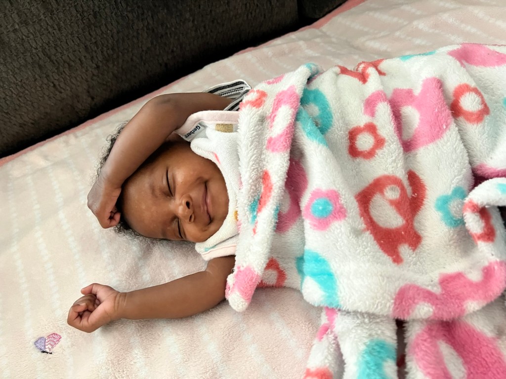 I remember that first night like it was yesterday. We had nothing — no crib, no clothes, no baby supplies. Our solution? We pushed our ottoman against the wall, surrounded it with pillows, draped it with blankets, and prayed it would work. She slept all night with the biggest smile on her face, as if she already knew she was home.